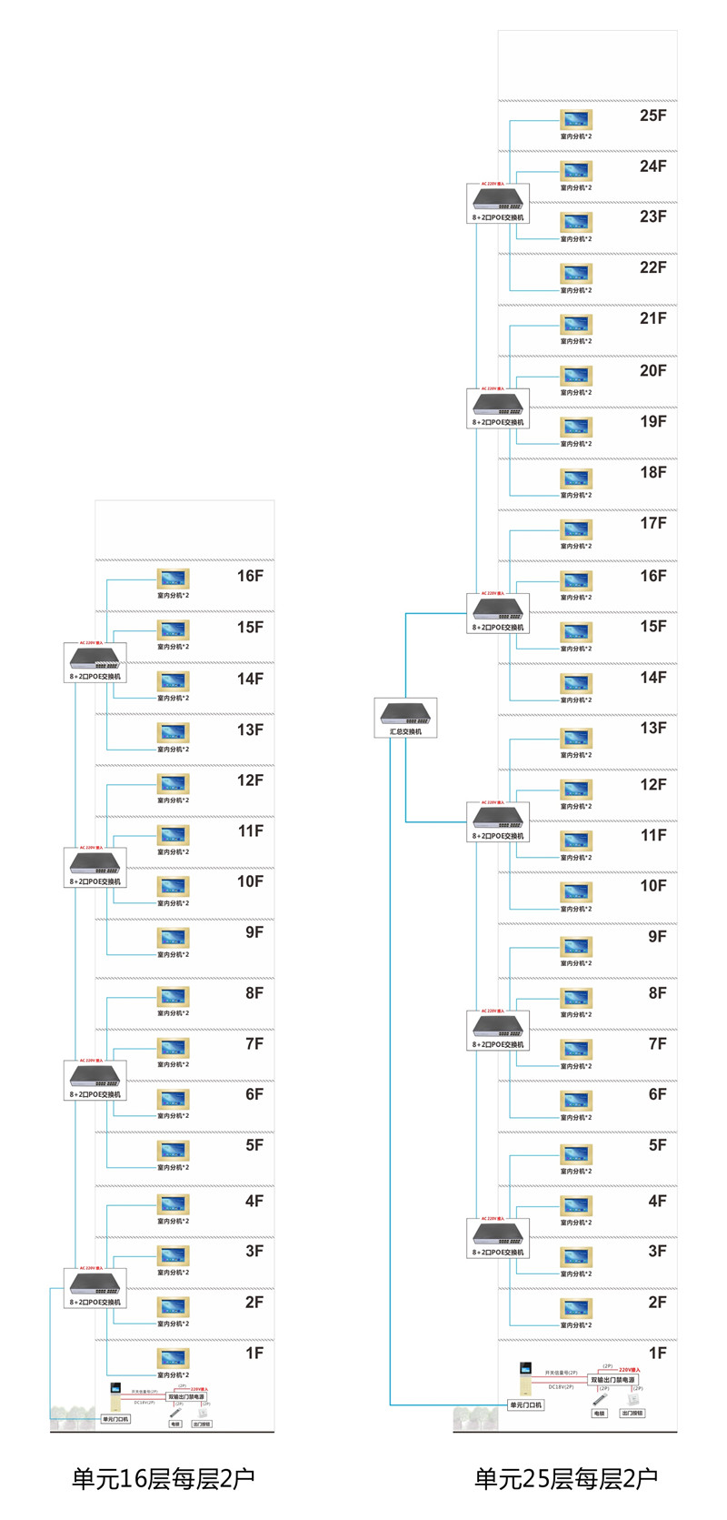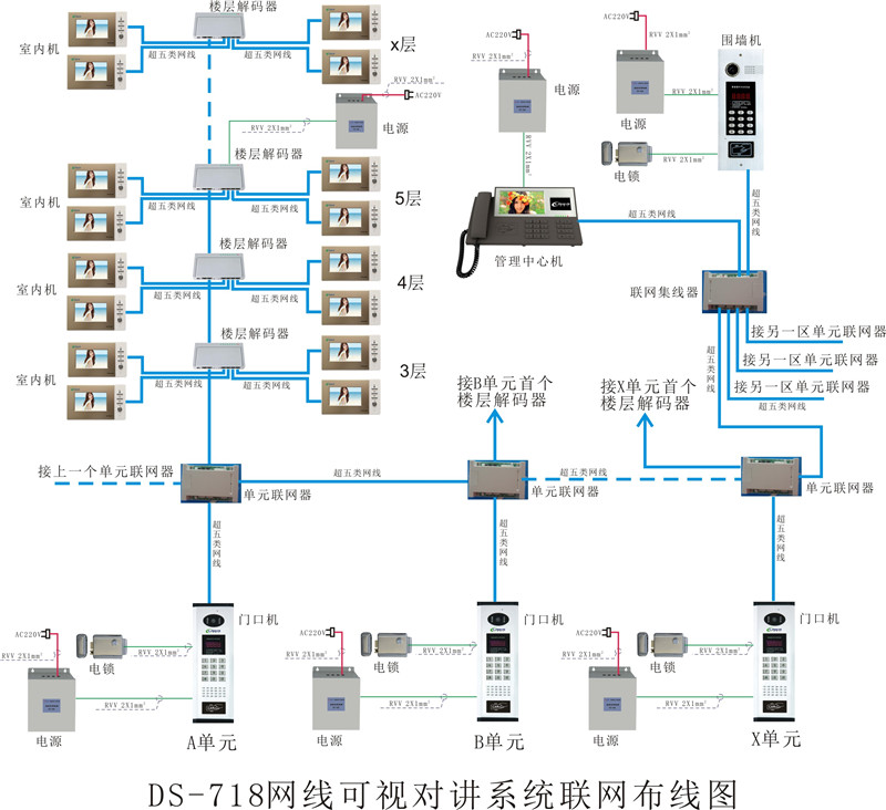 • DS-718網線可視對講系統聯網布線圖